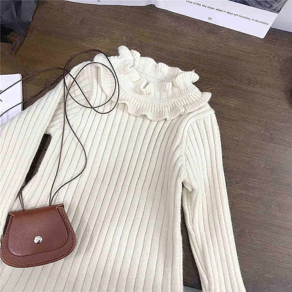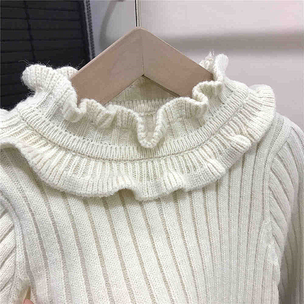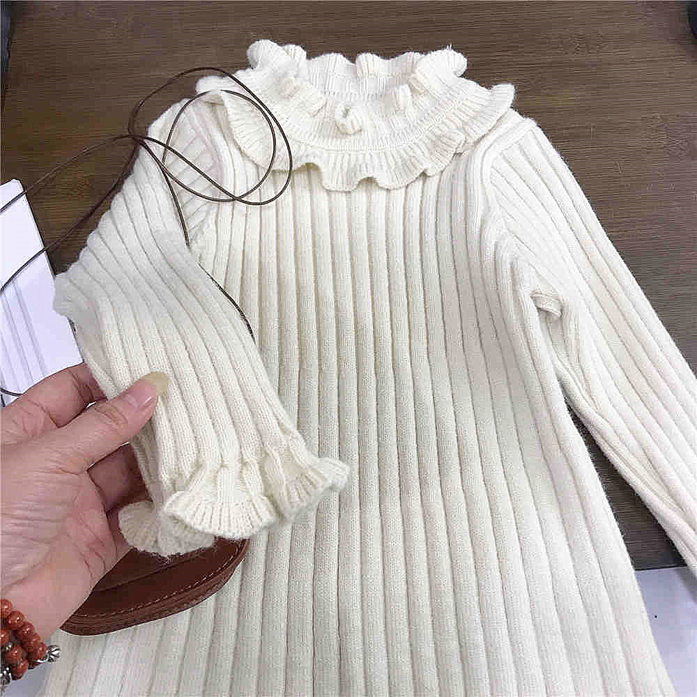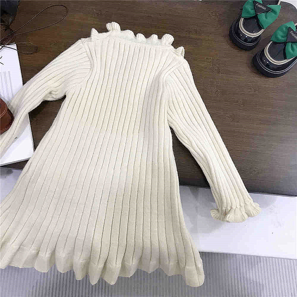 【100-150】フリルデザインリブニットワンピース