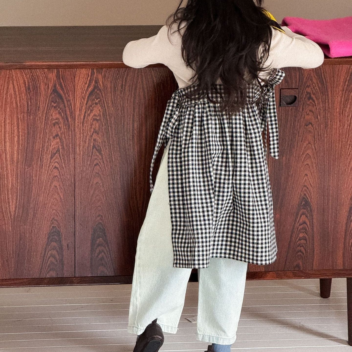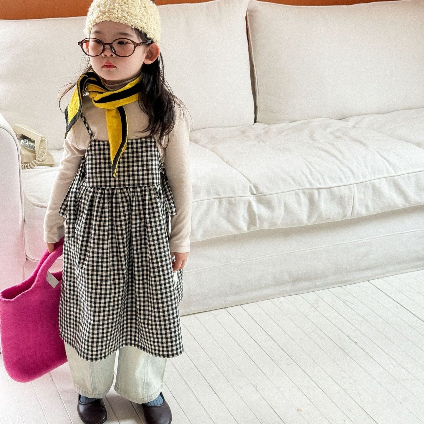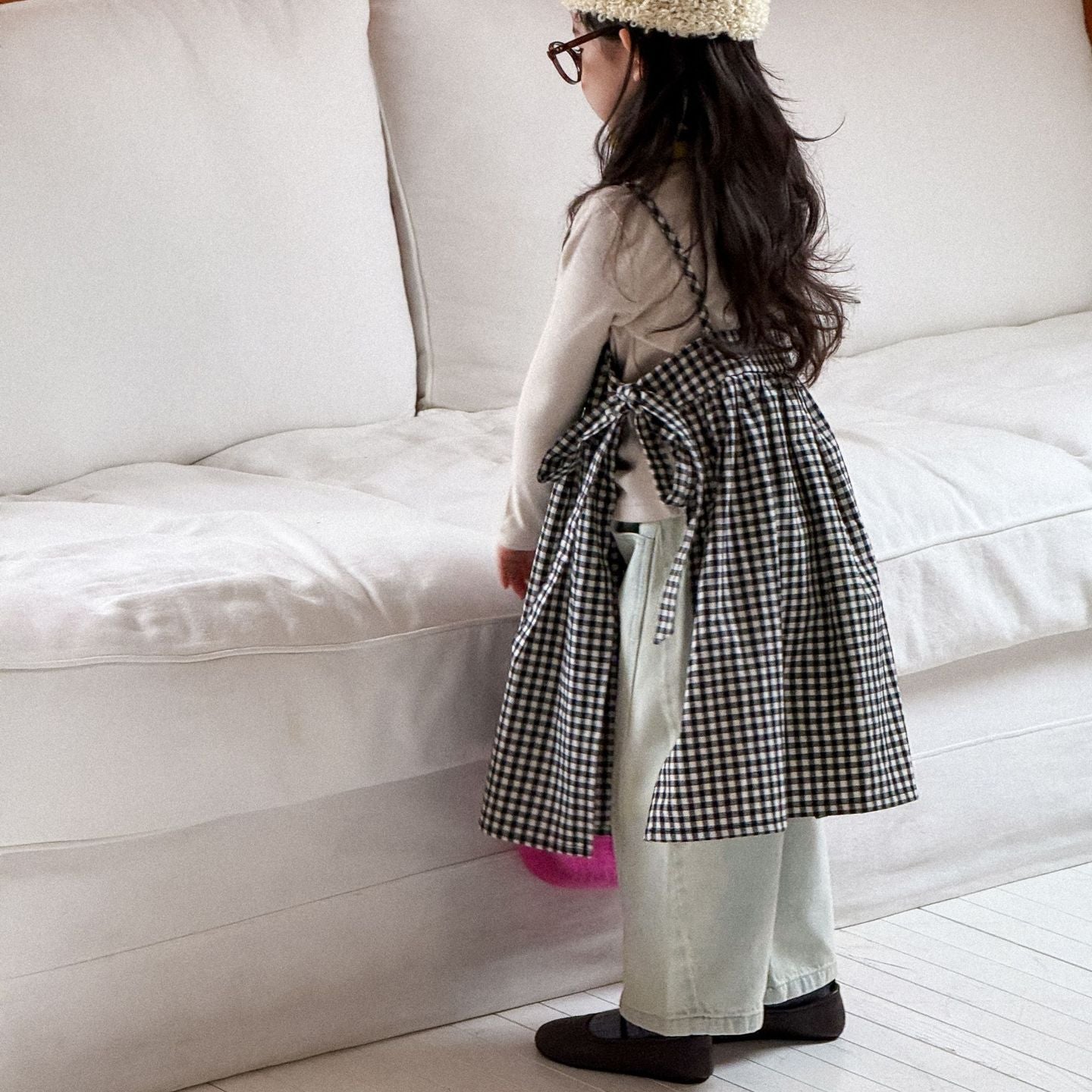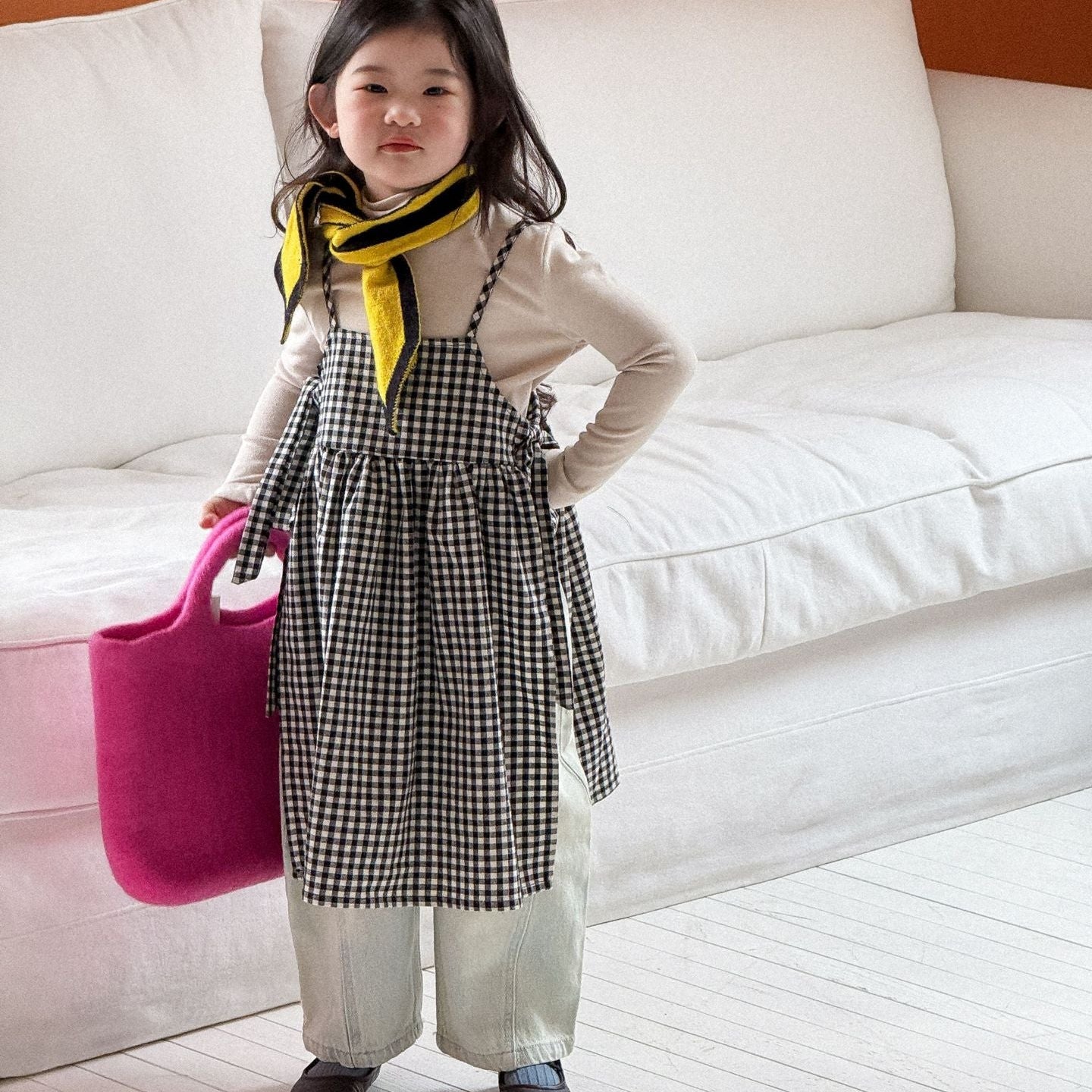 【90-140】サイドリボンチェック柄ノースリーブワンピース