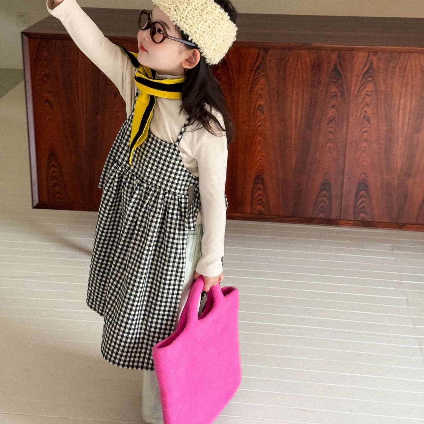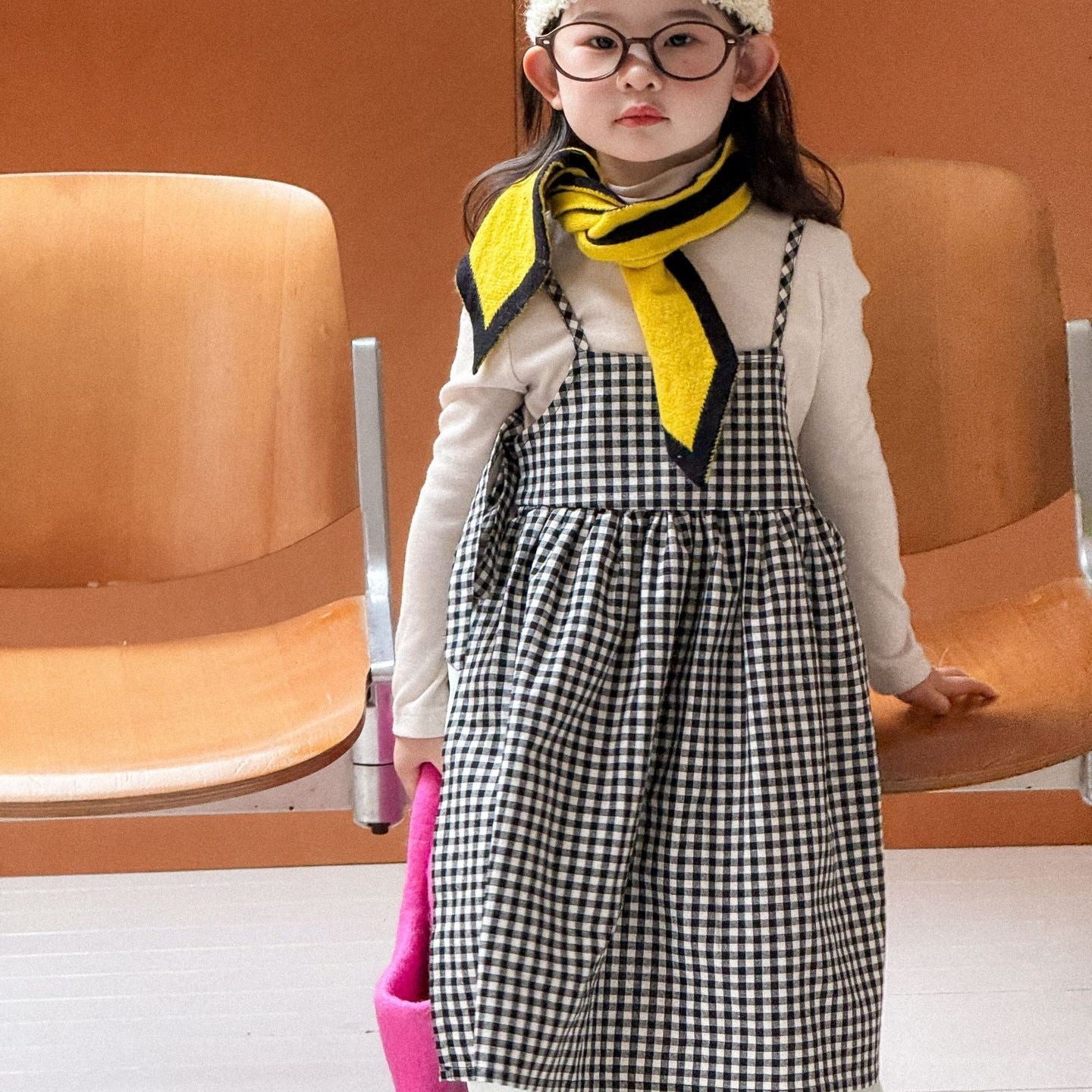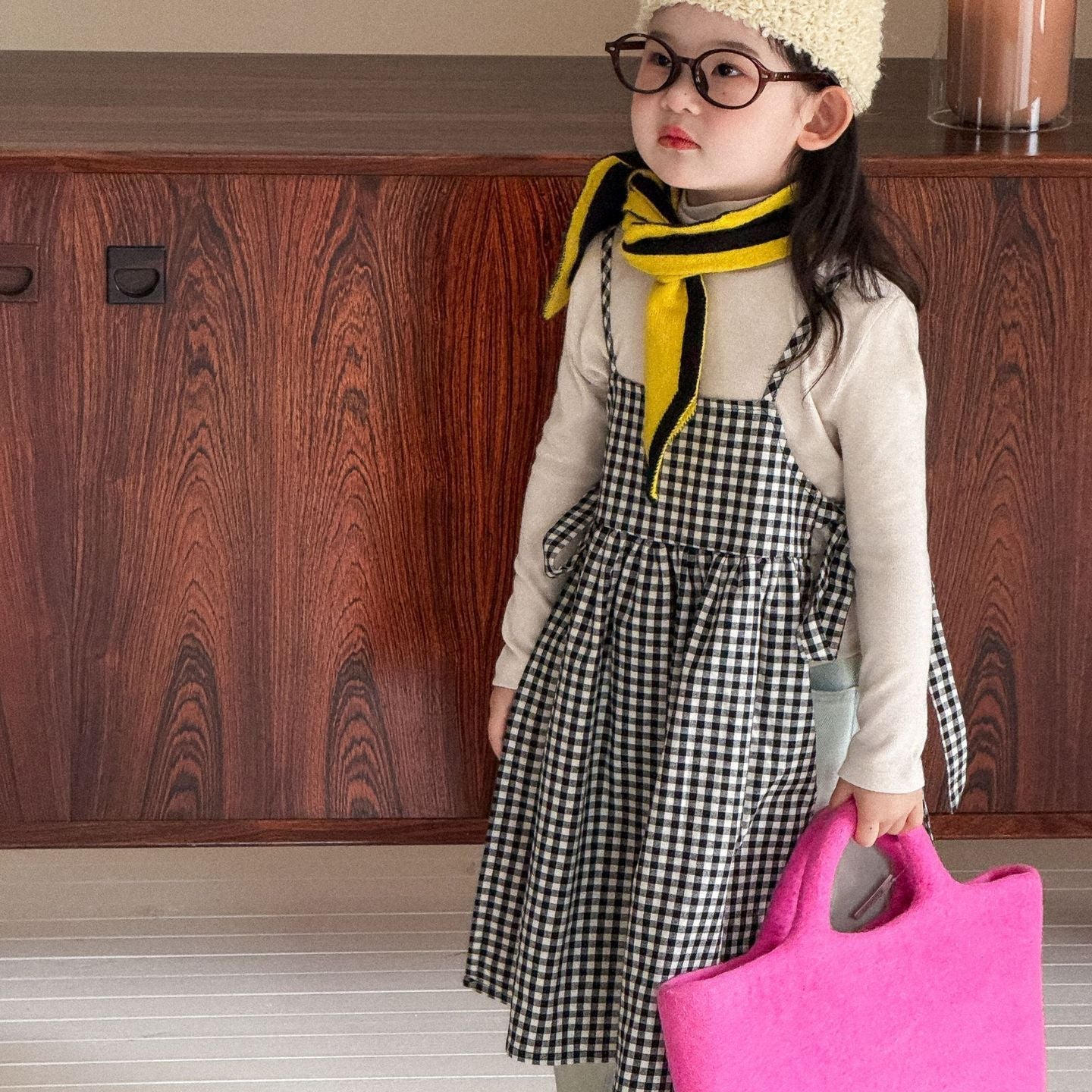 【90-140】サイドリボンチェック柄ノースリーブワンピース