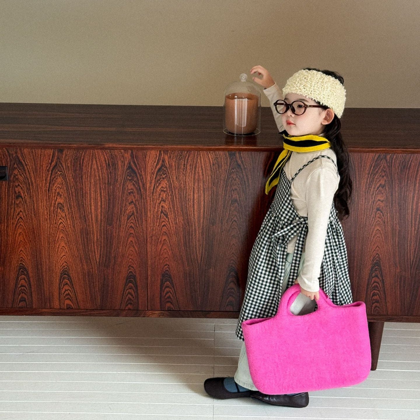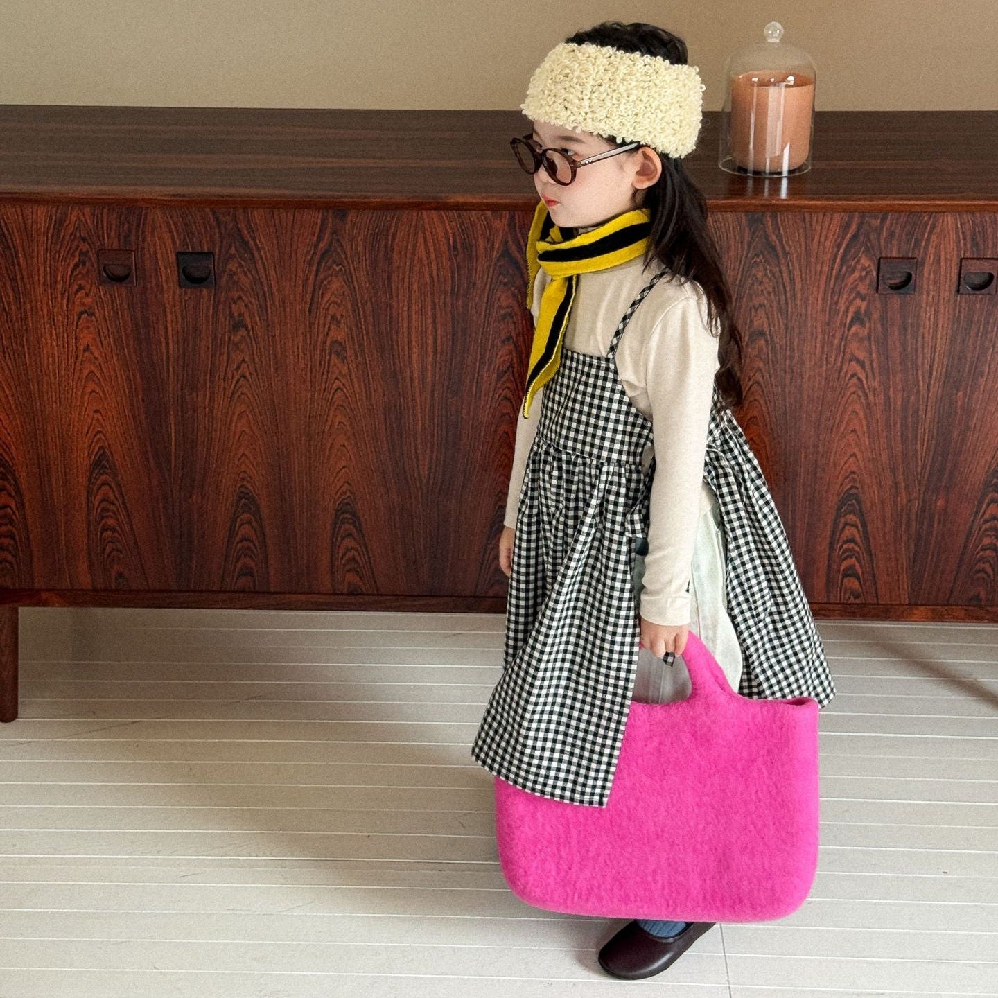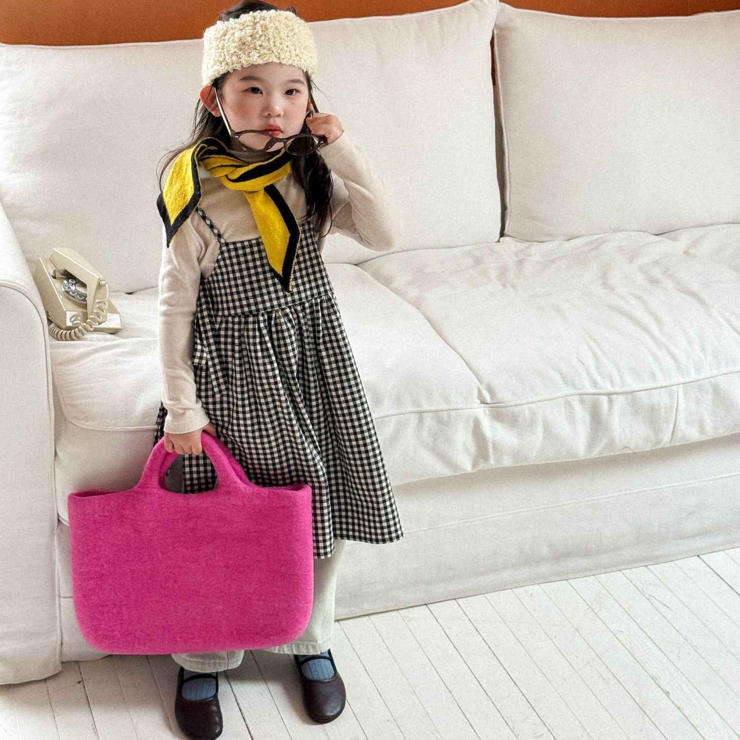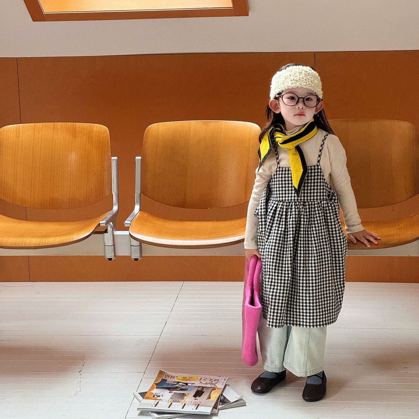【90-140】サイドリボンチェック柄ノースリーブワンピース
