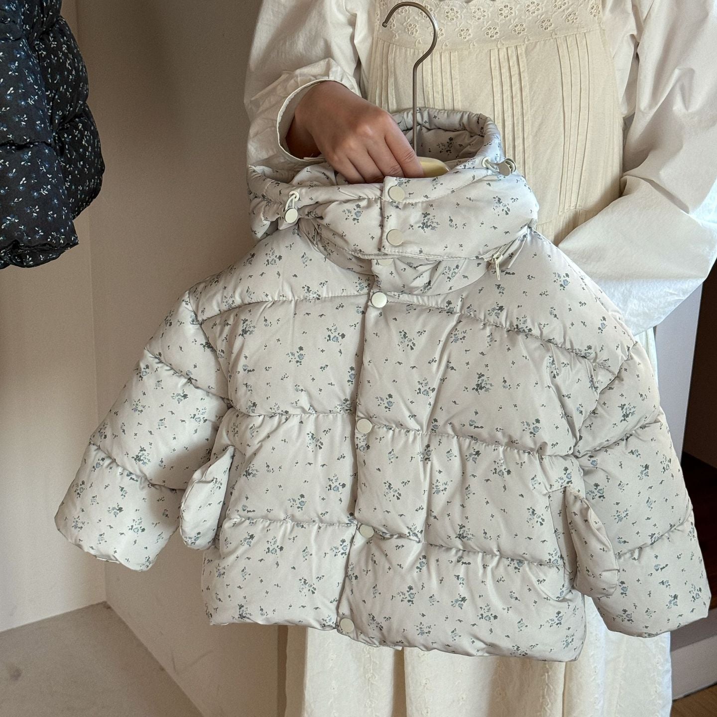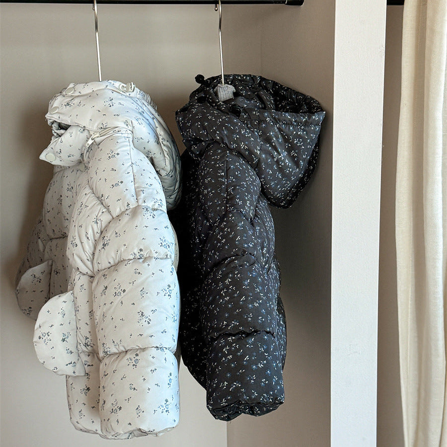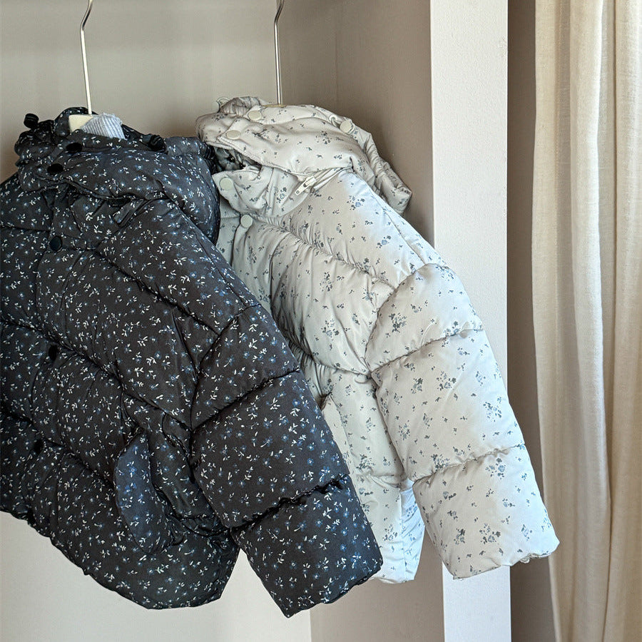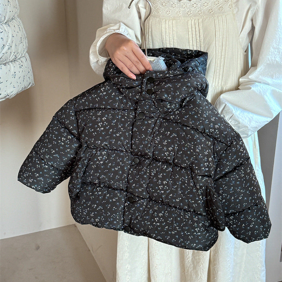 【90-140】フード付き小花柄中綿ジャケット