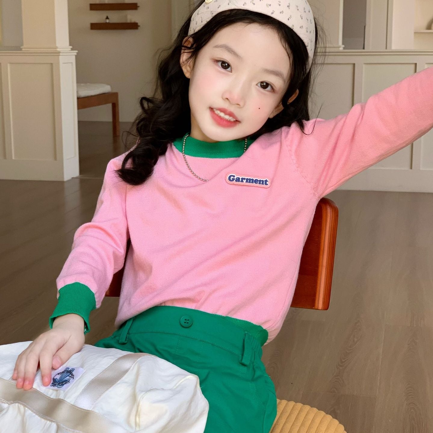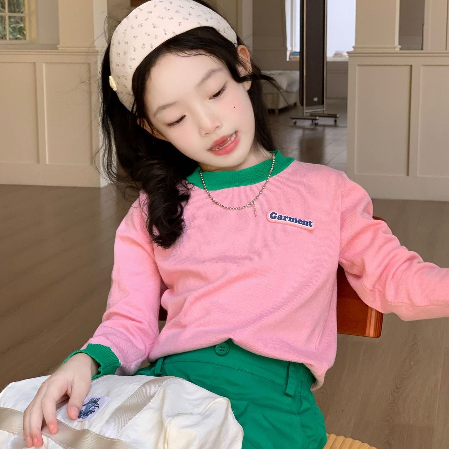 【90-140】バイカラー長袖プルオーバー