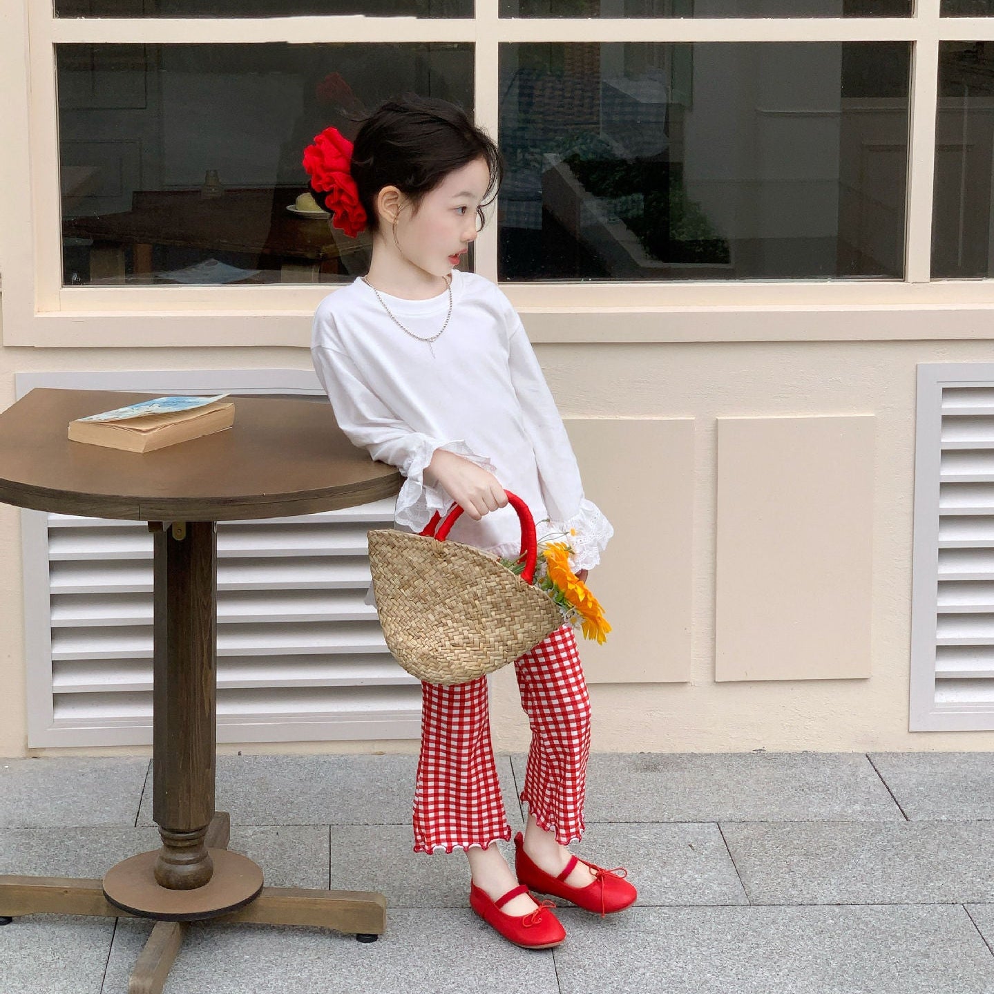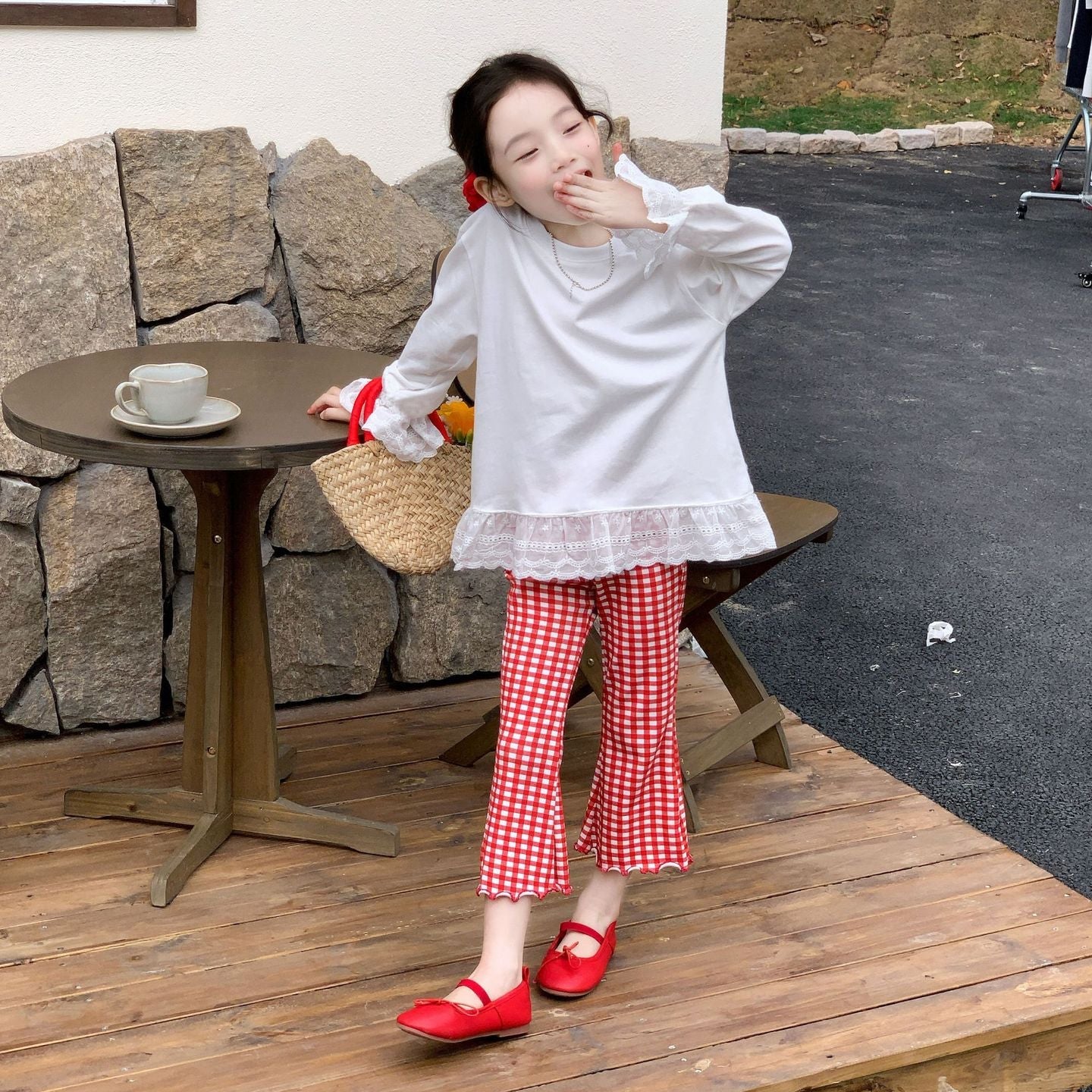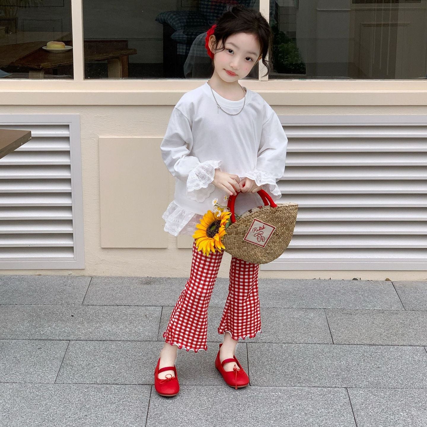 【90-140】チェック柄メロウフレアパンツ