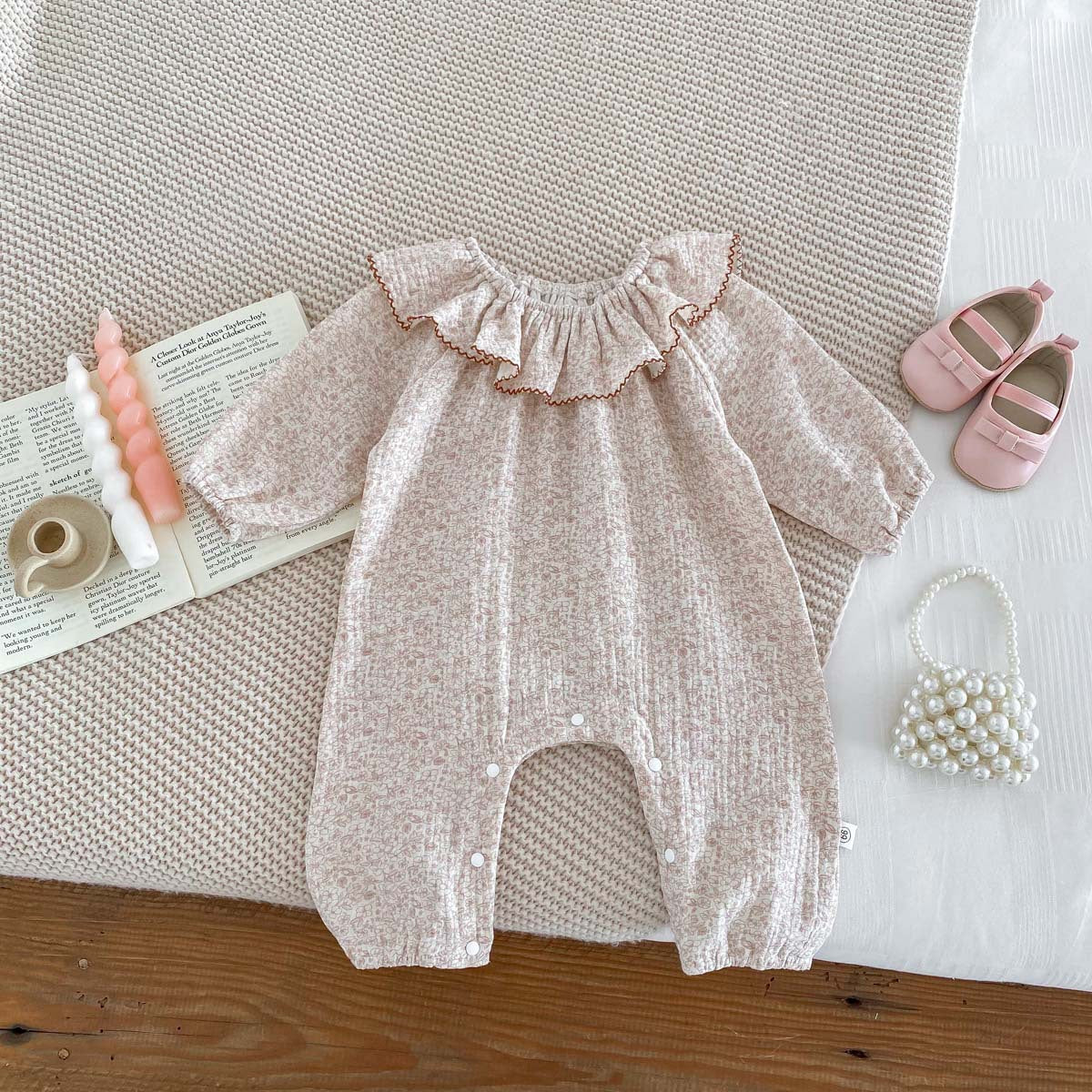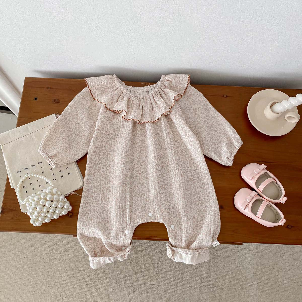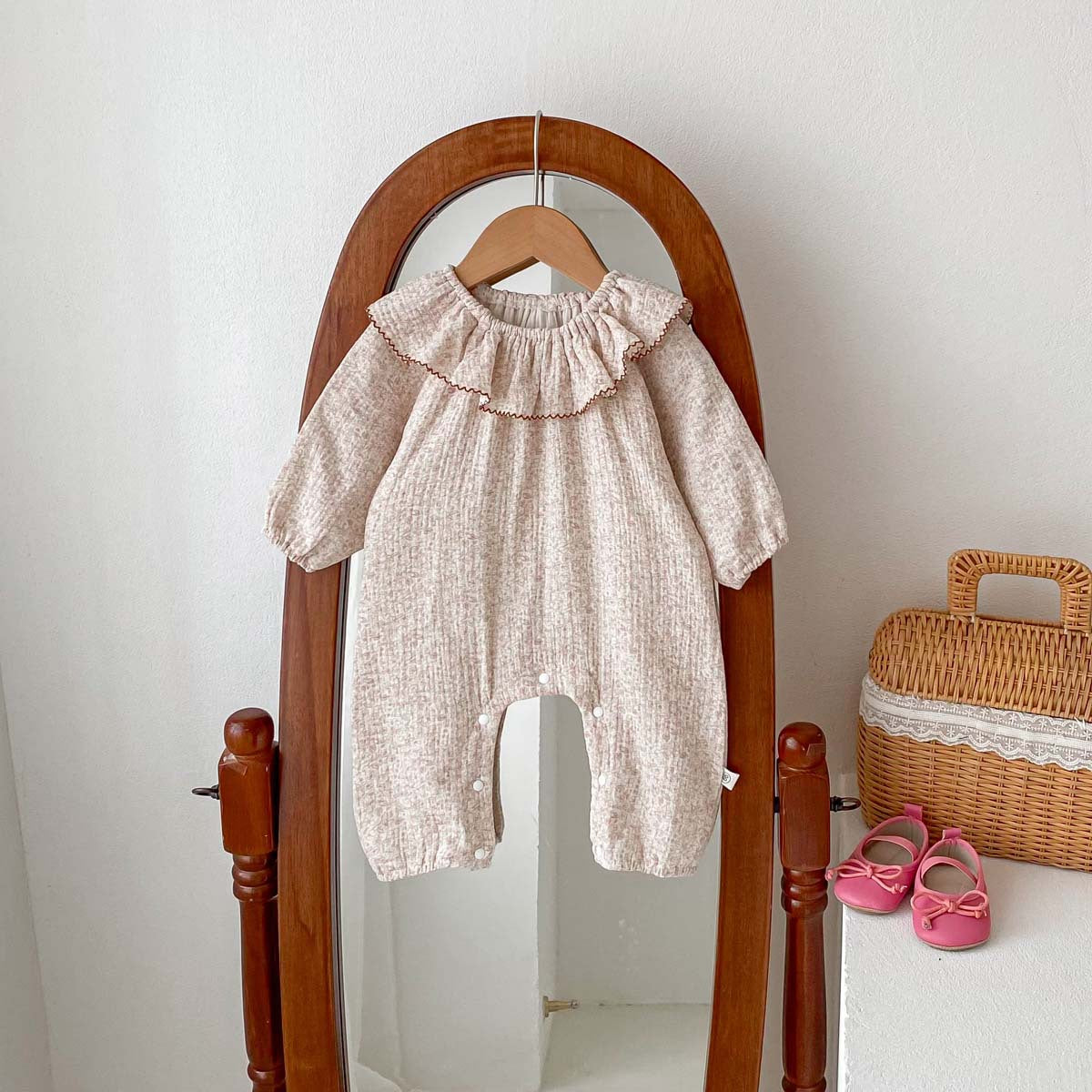 【73-90】ラッフルカラー小花柄ロンパース