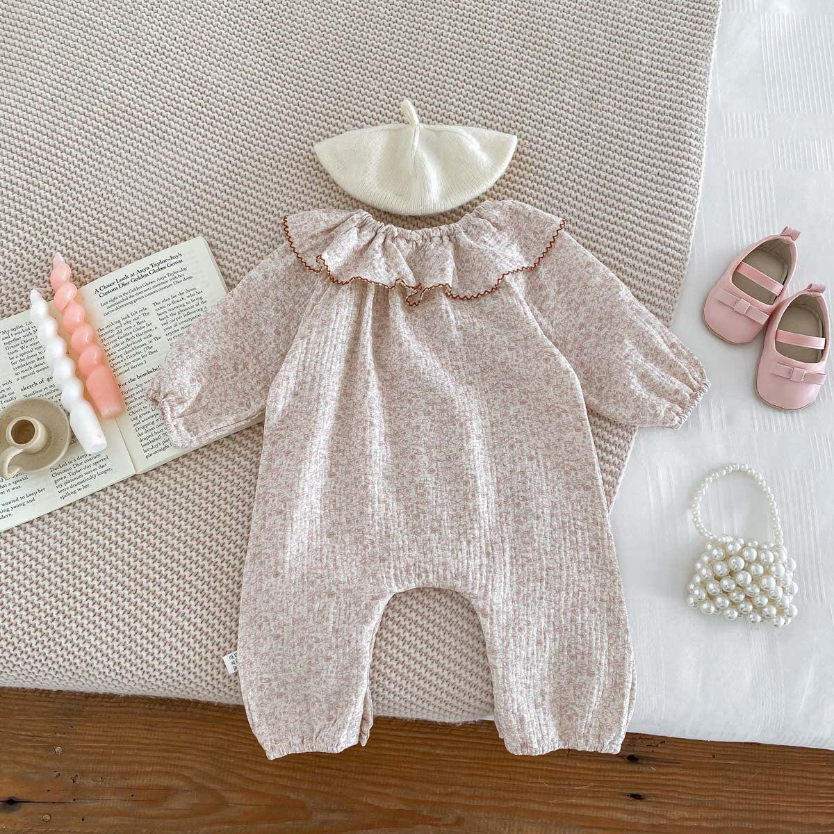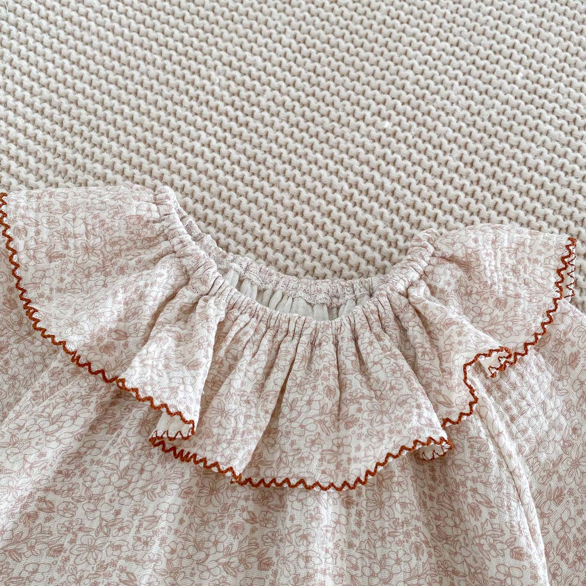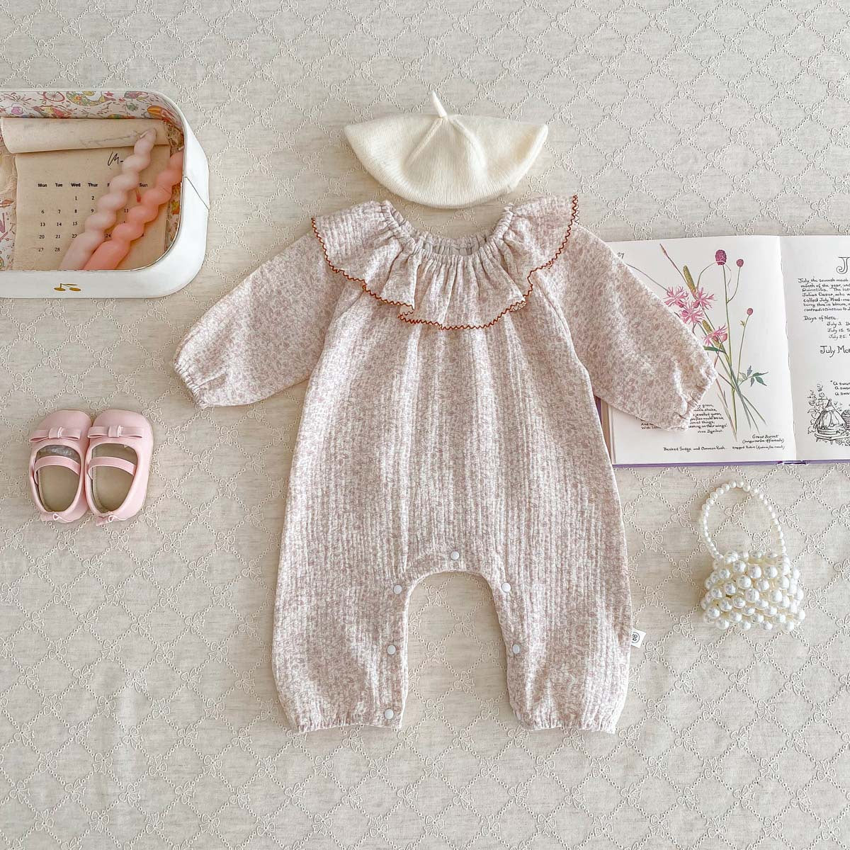 【73-90】ラッフルカラー小花柄ロンパース