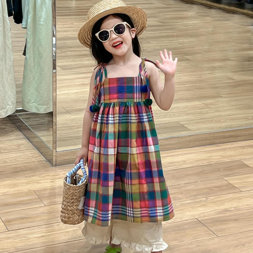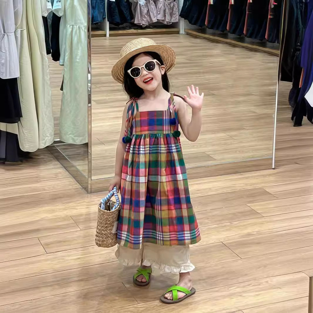 【90-140】ワンポイントデザイン切替ノースリワンピース