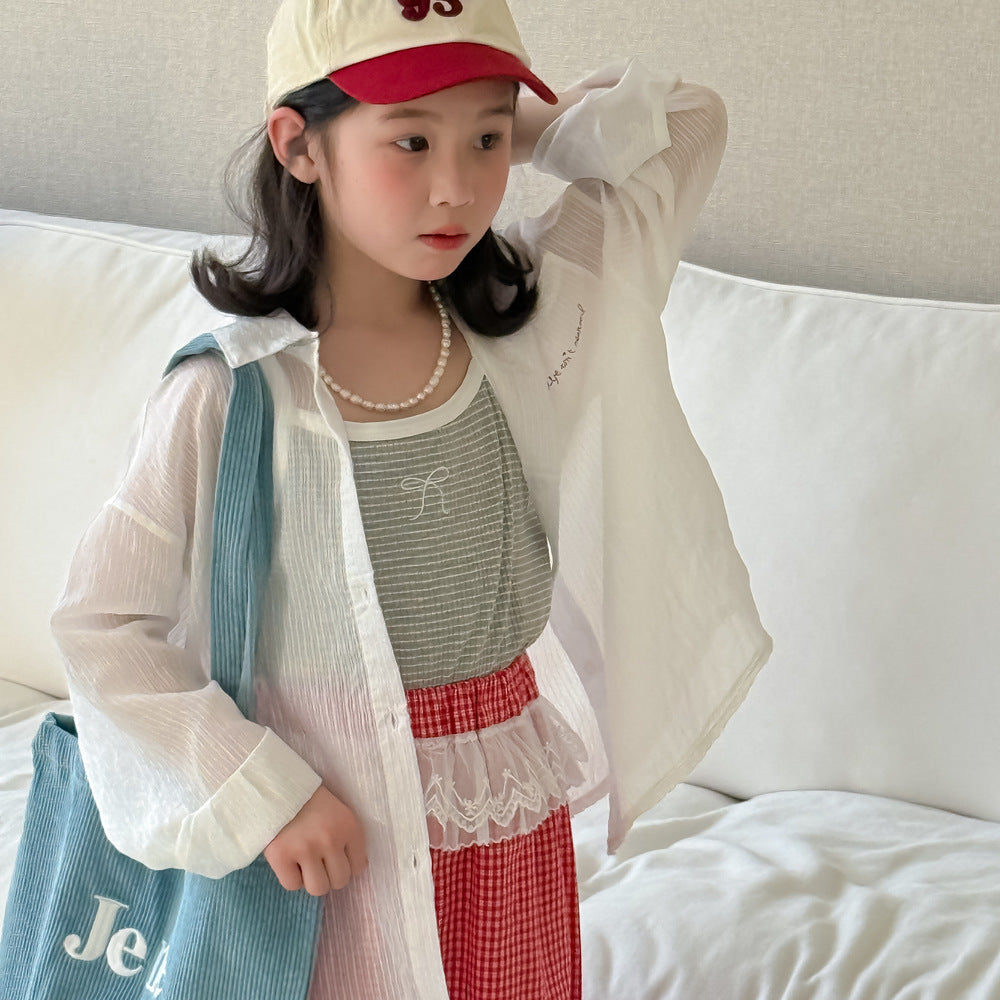 【90-140】チュールデザイン半袖シャツ