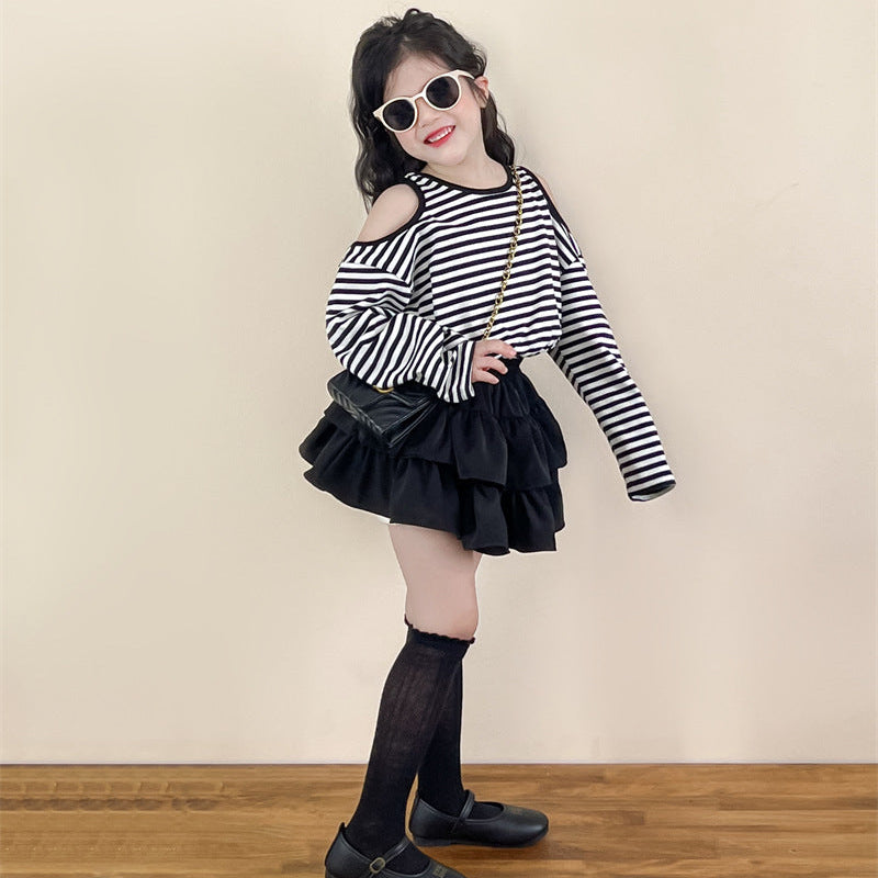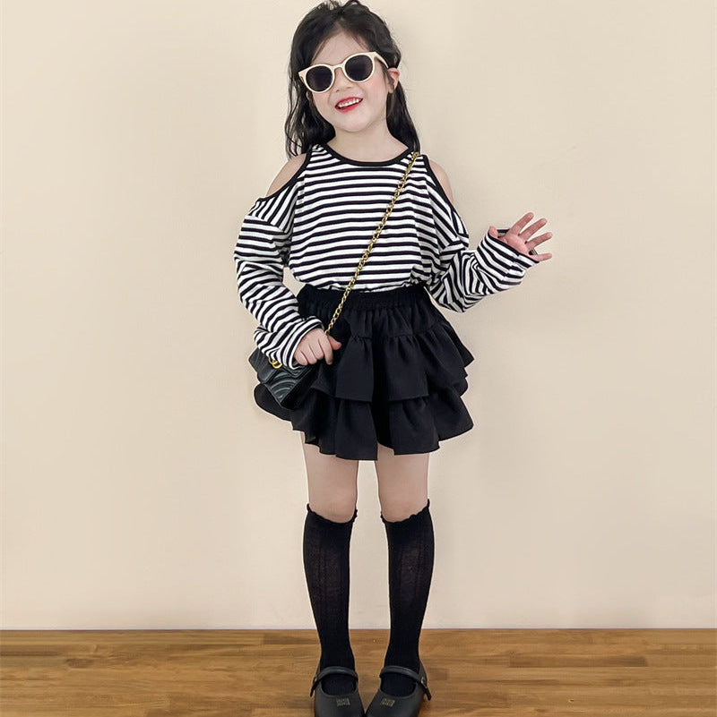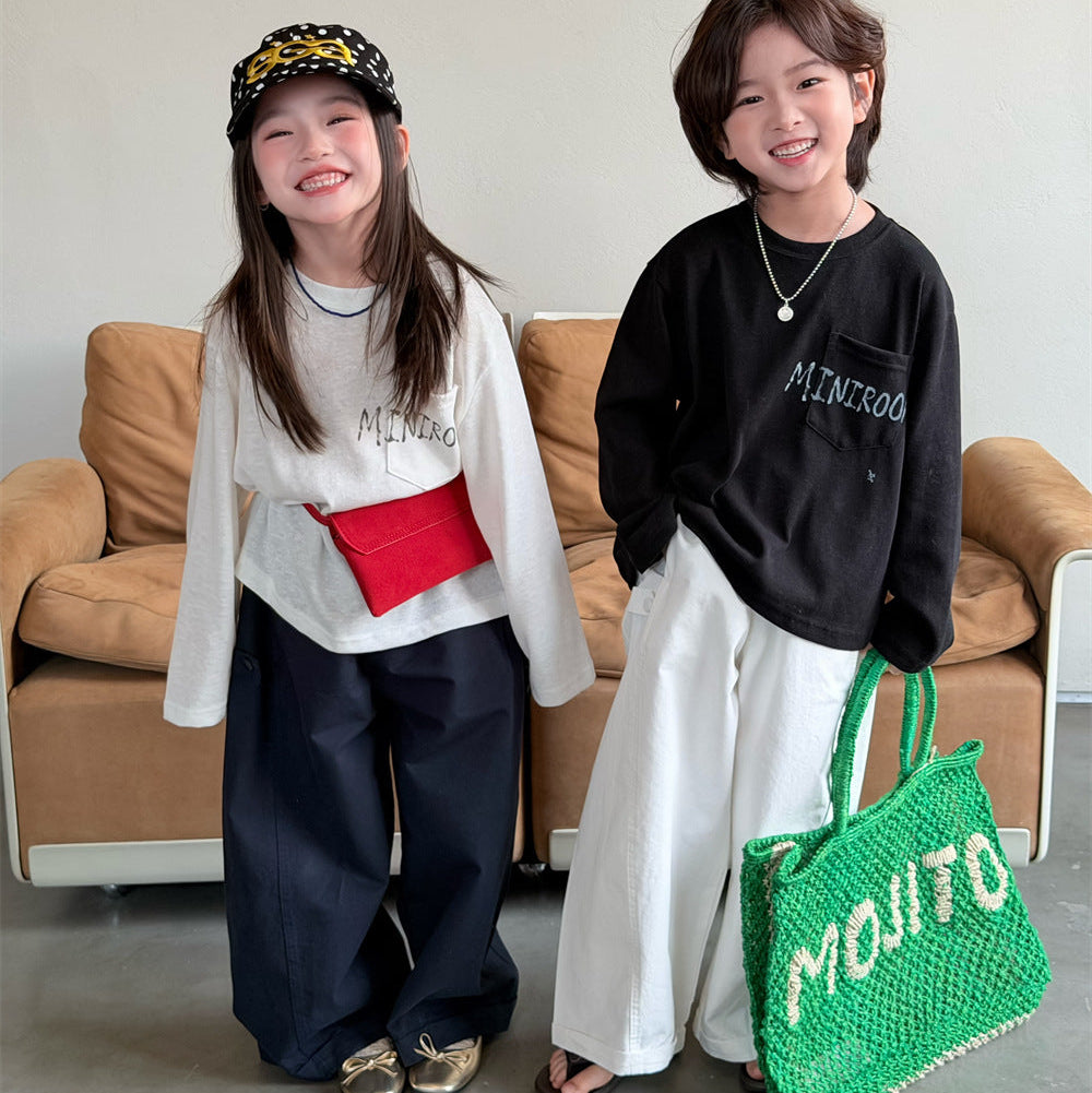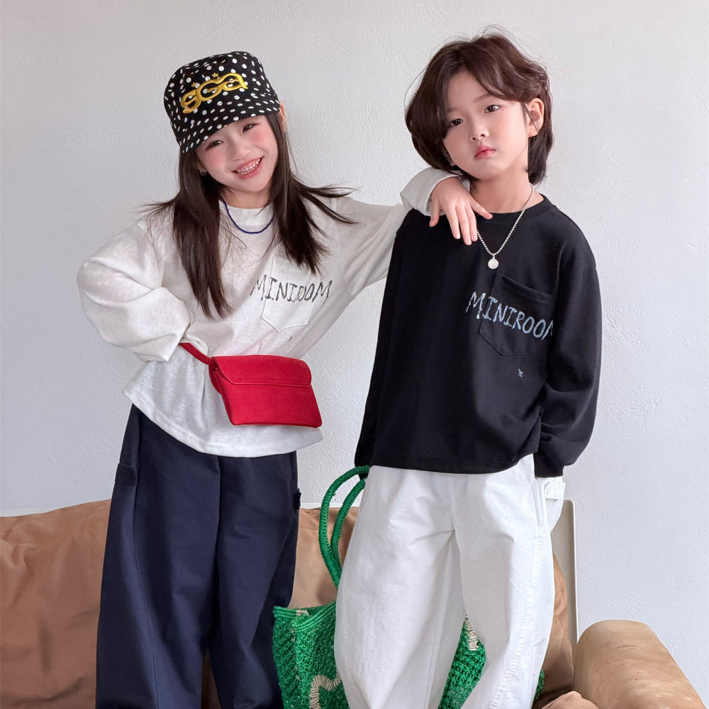 【90-150】ボーダーミニ英字ロゴ長袖Tシャツ