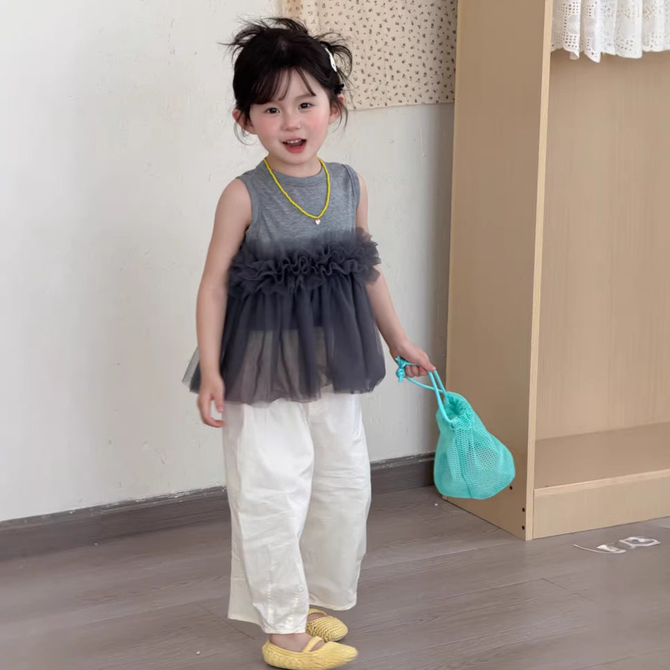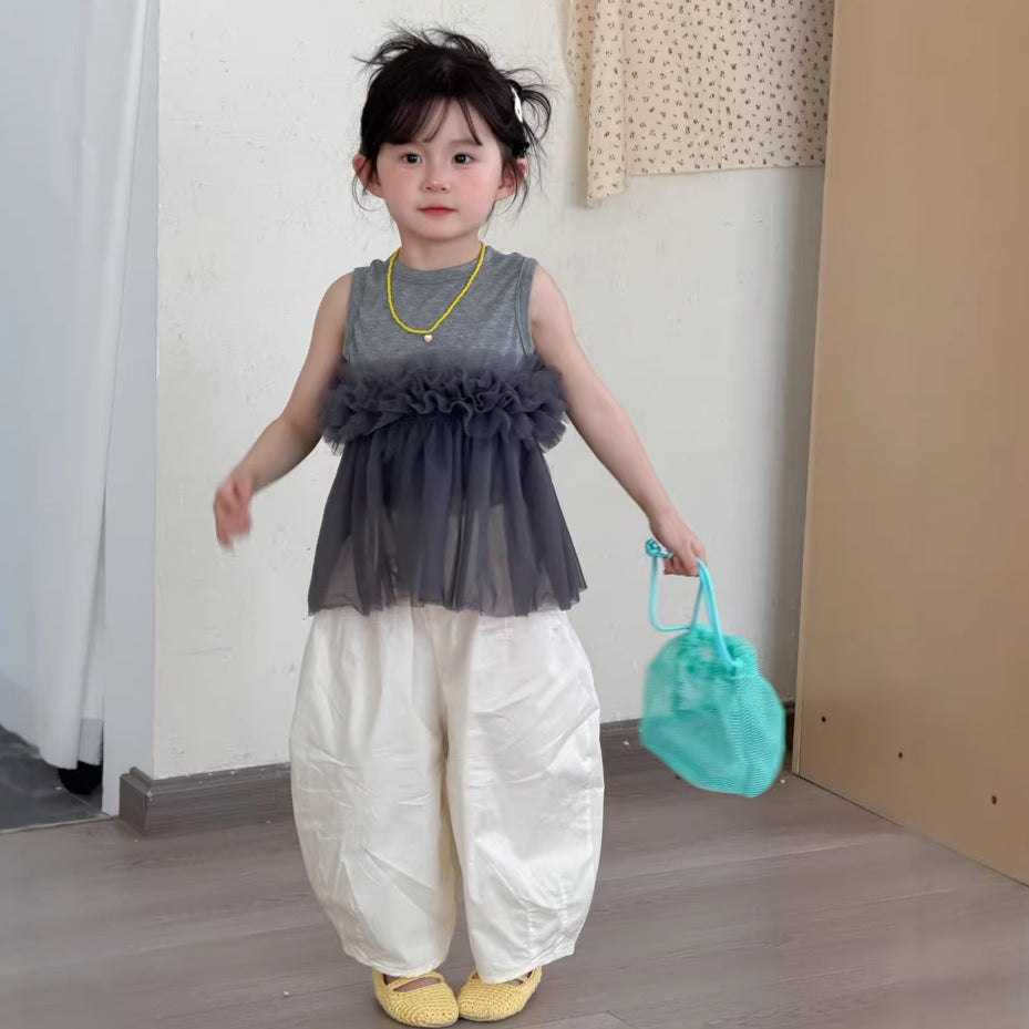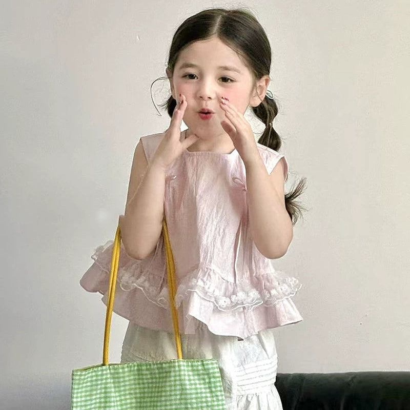 【90-140】レース&リボンデザインノースリーブシャツ