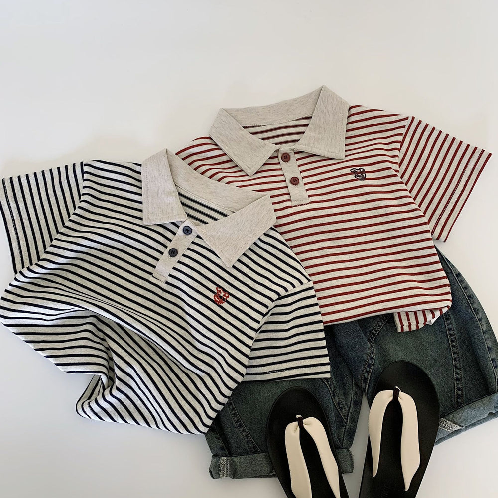 【90-140】ボーダー柄ポロシャツ