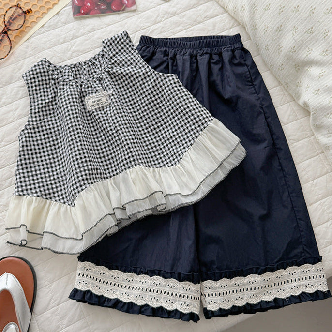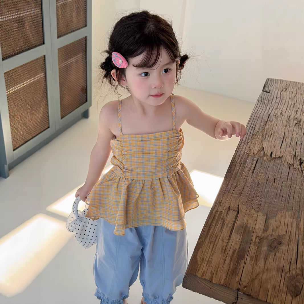 【90-150】フリルヘムチェック柄ノースリーブ