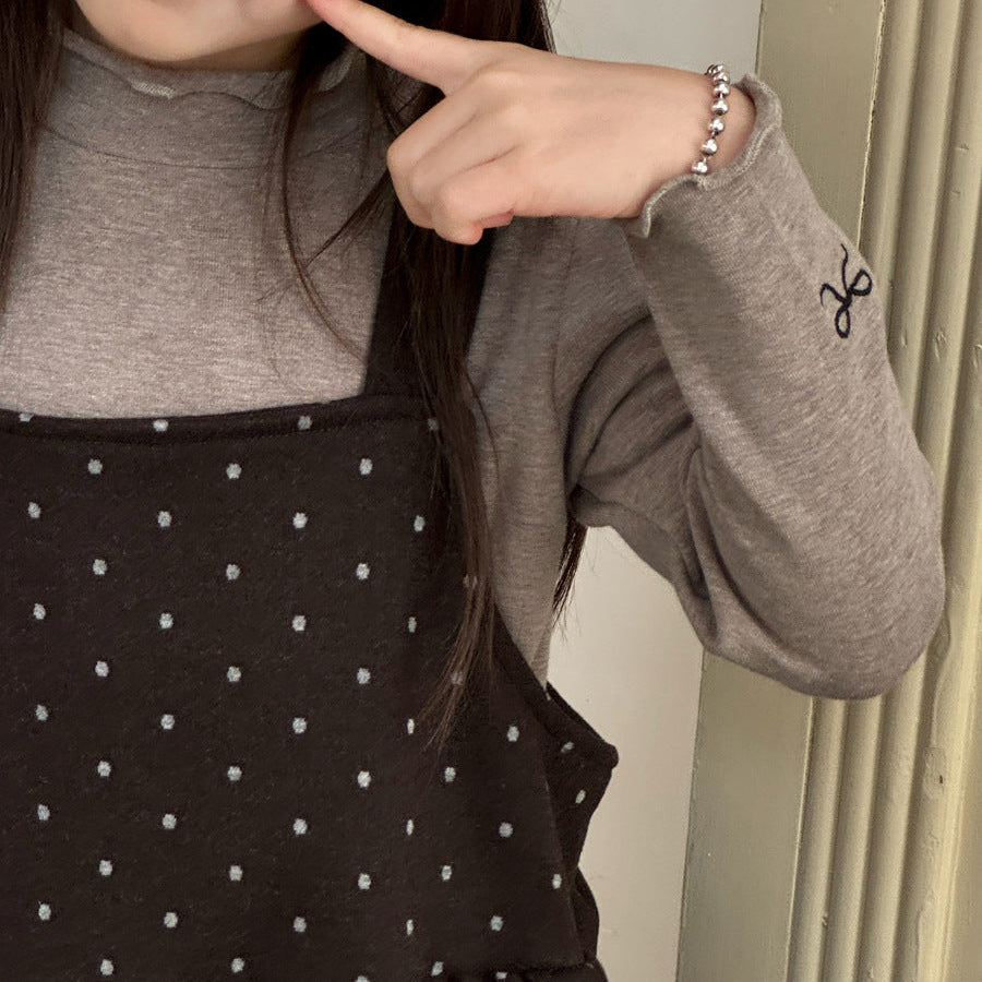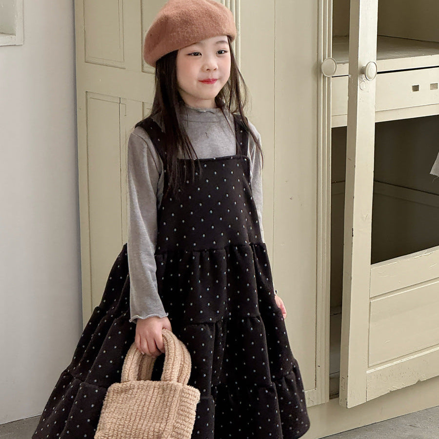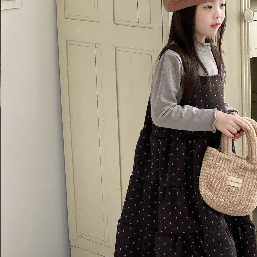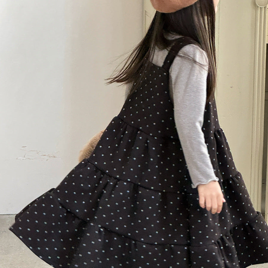 【90-150】ドット柄ティアードジャンパースカート