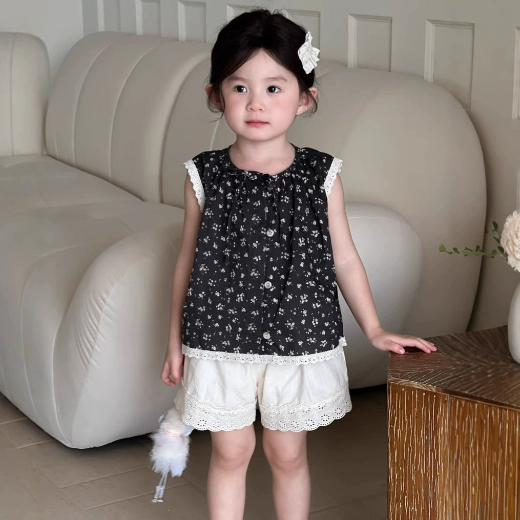 【73-100】フリルカラーパターンプリントトップス