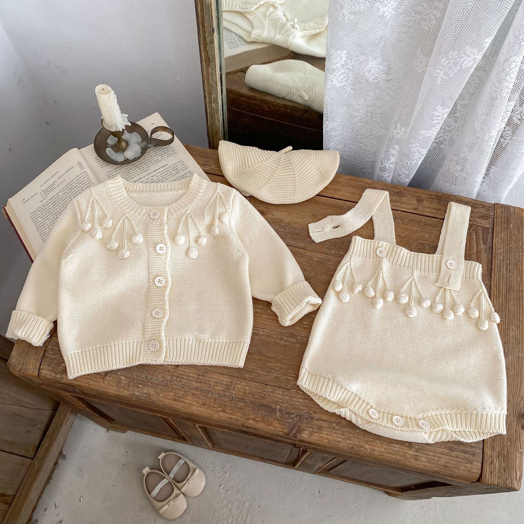 【73-100】ポンポンデザインカーディガン